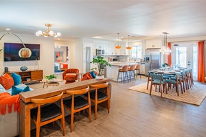 This modern, fully equipped kitchen is ready for everything from quick breakfasts to full group dinners. With ample counter space, quality appliances, and an open layout, it’s as functional as it is beautiful. The dining area offers plenty of seating for shared meals, celebrations, and game nights.
